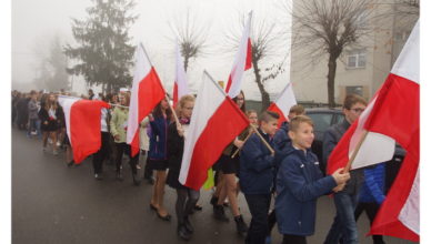 Dnia 9 listopada 2018 r. uczniowie naszej szkoły oraz gimnazjum uczcili 100 rocznicę odzyskania niepodległości przez Polskę uroczystym marszem z flagami narodowymi ulicami