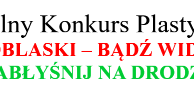 W ramach konkursu „Odblaskowa szkoła 2021” uczniowie klas I – VI wzięli udział w konkursie plastycznym „ZABŁYŚNIJ NA DRODZE”. Celem tego konkursu było
