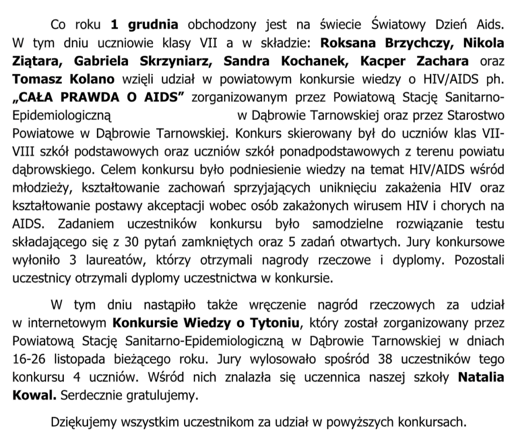 Powiatowy konkurs „Cała prawda o AIDS”