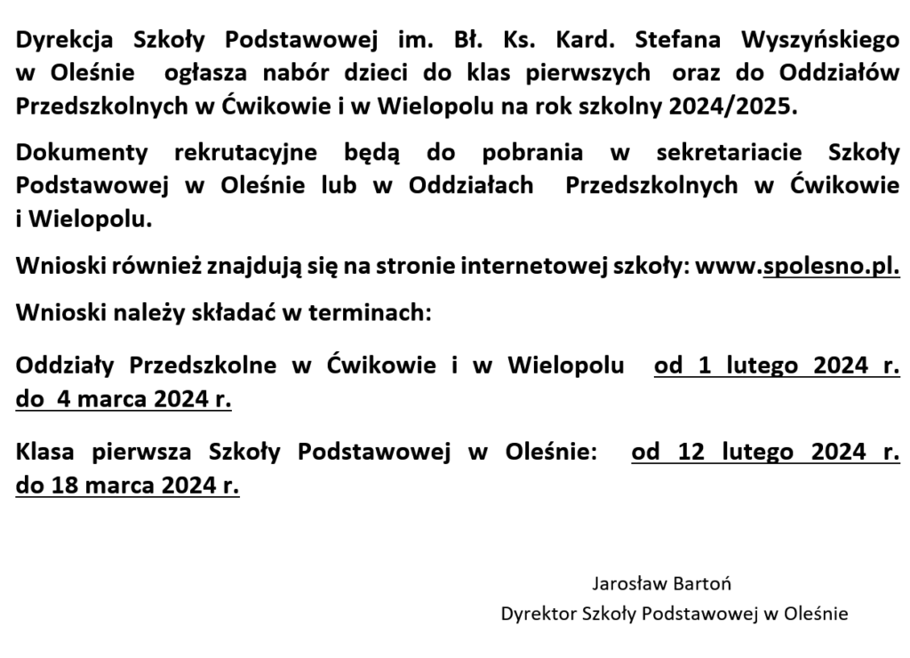 - Zarządzenie Nr 7 – terminy rekrutacji na rok szkolny 2023-2024