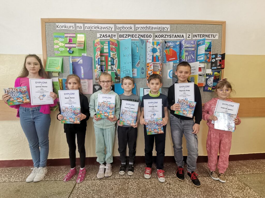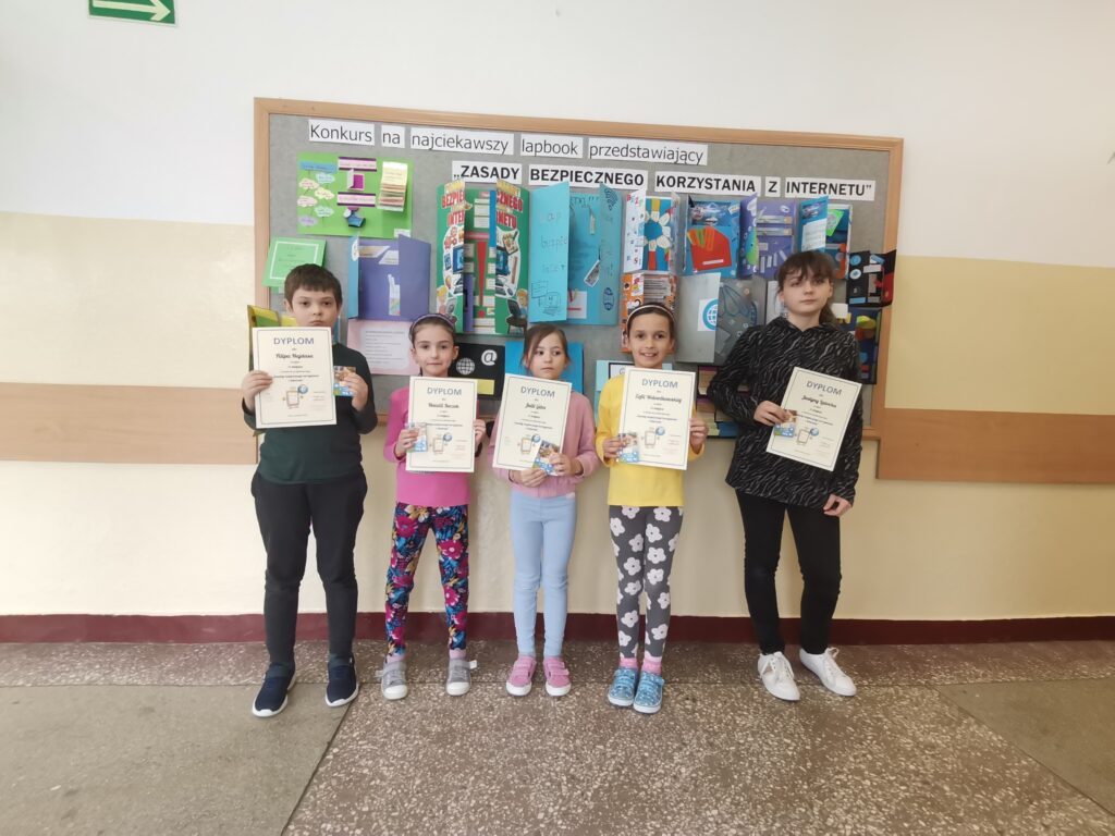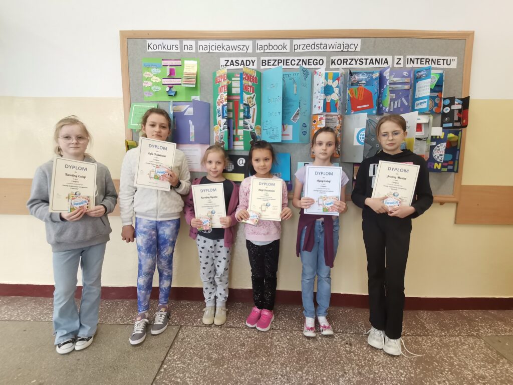 Dnia 22 kwietnia 2024r. nastąpiło podsumowanie szkolnego konkursu na najciekawsze przedstawienie Zasad Bezpiecznego Korzystania z Internetu w formie lapbook-a. Konkurs został zorganizowany w ramach obchodów Światowego Dnia Bezpiecznego Internetu. W konkursie mógł wziąć każdy uczeń z klas I-VIII.