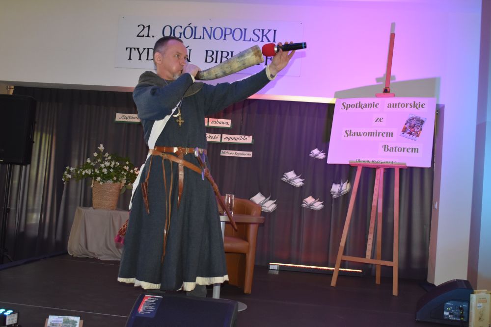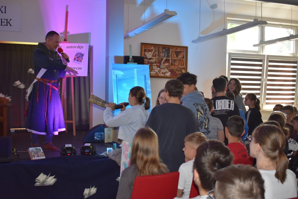Dnia 10 maja 2024 roku uczniowie klas IV – VI naszej szkoły mieli okazję uczestniczyć w spotkaniu z panem Sławomirem Batorem, autorem książki pt. „Dąbrowa Tarnowska w legendach i opowieściach”. Pan Sławomir, który jest również rekonstruktorem historycznym oraz członkiem współczesnych bractw rycerskich, zaprezentował uczestnikom elementy stroju i broni. Zapoznał także zebranych z fragmentami zamieszczonych w książce legend. Po zapoznaniu się z dąbrowskimi legendami był czas na zadawanie przez uczniów licznych pytań, na które autor starał się wyczerpująco odpowiedzieć. Spotkanie to zorganizowała Gminna Biblioteka Publiczna w Oleśnie w ramach obchodów XXI Ogólnopolskiego Tygodnia Bibliotek. Celem tego przedsięwzięcia jest rozwijanie u uczniów zamiłowania do literatury i promocja piękna polskiej poezji i prozy.