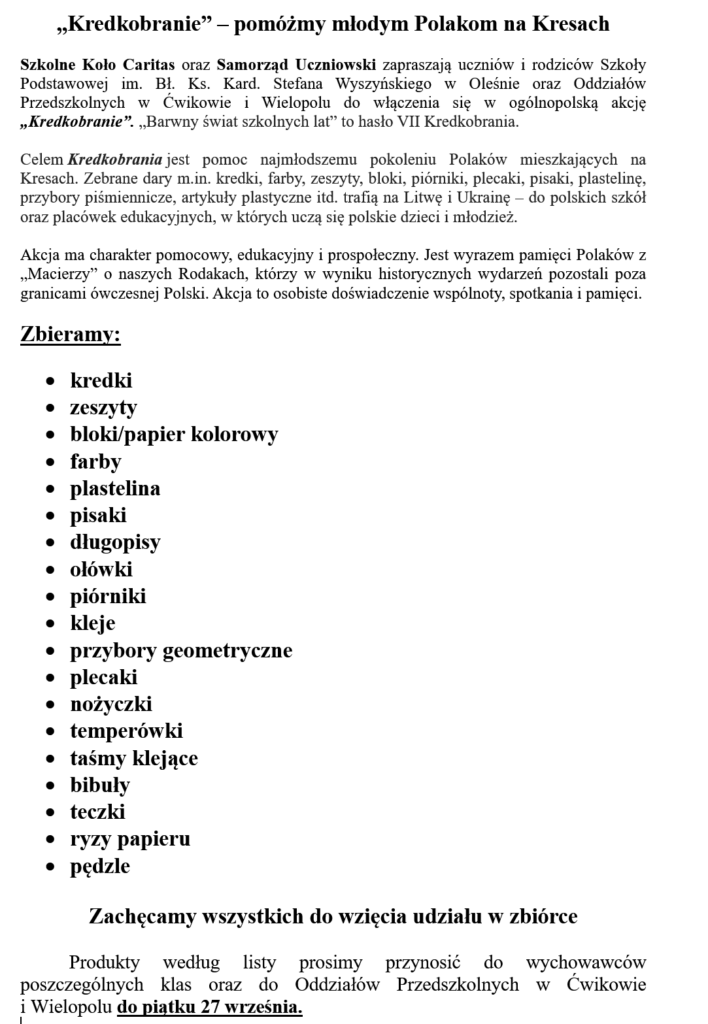 Pierwsza akcja Szkolnego Caritas w tym roku