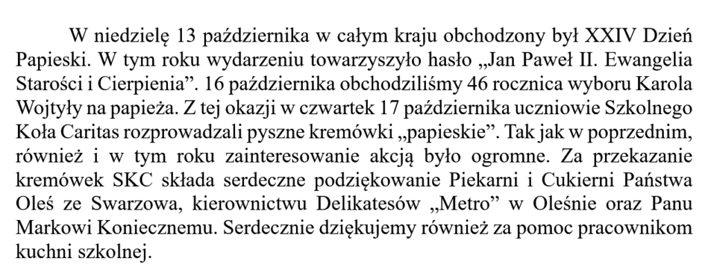 Kolejna akcja Szkolnego Koła Caritas: Kremówki z okazji XXIV Dnia Papieskiego 22 października 2024spolesno Dzien_papieski__6Dzien_papieski__5Dzien_papieski__1Dzien_papieski__3Dzien_papieski__4Dzien_papieski__7Dzien_papieski__2Dzien_papieski__9Dzien_papieski__8Dzien_papieski__11Dzien_papieski__10Dzien_papieski__12Dzien_papieski__13Dzien_papieski__14