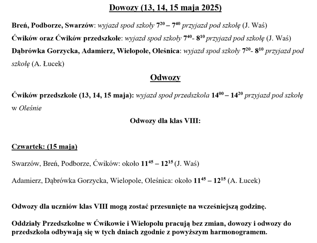 Dowozy i odwozy