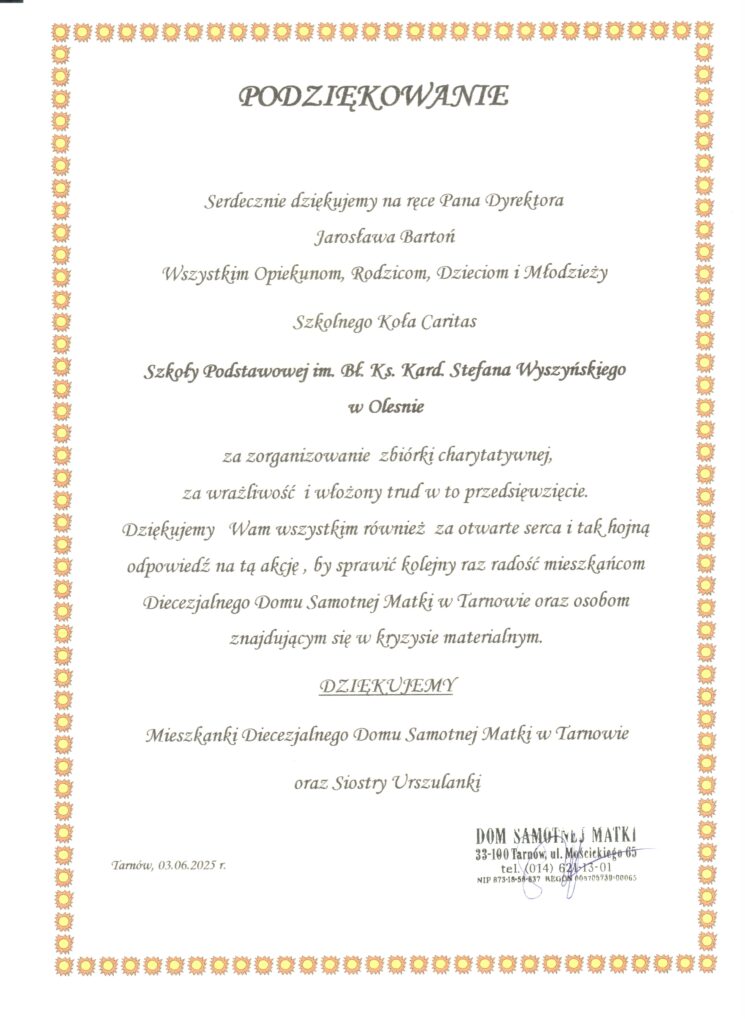 Kolejna akcja Szkolnego Koła Caritas – zbiórka dla Domu Samotnej Matki w Tarnowie oraz Środowiskowego Domu Samopomocy w Oleśnicy 10 czerwca 202514 czerwca 2025spolesno