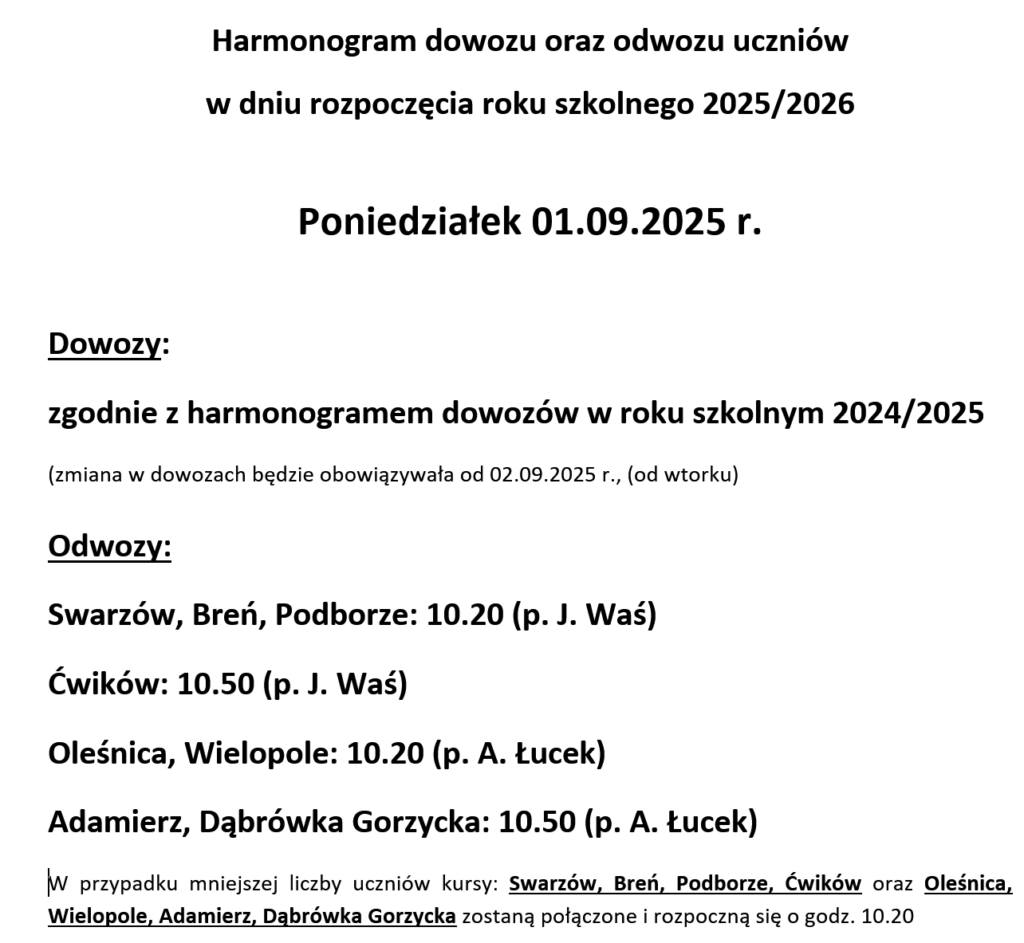 Harmonogram rozpoczęcia roku szkolnego 2025/2026