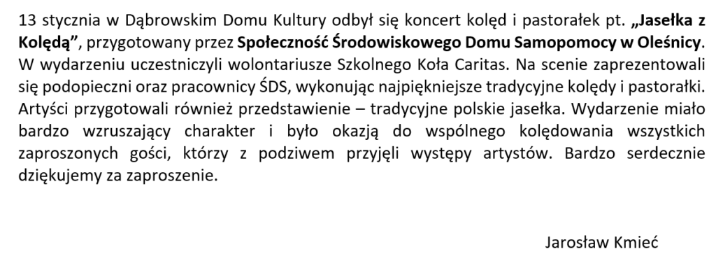 Wyjazd wolontariuszy Szkolnego Koła Caritas na koncert kolęd „Jasełka z Kolędą” 14 stycznia 202614 stycznia 2026spolesno koncert_kolend_14koncert_kolend_15koncert_kolend_16koncert_kolend_17koncert_kolend_18koncert_kolend_1koncert_kolend_2koncert_kolend_3koncert_kolend_4koncert_kolend_5koncert_kolend_6koncert_kolend_7koncert_kolend_8koncert_kolend_9koncert_kolend_10koncert_kolend_11koncert_kolend_12koncert_kolend_13
