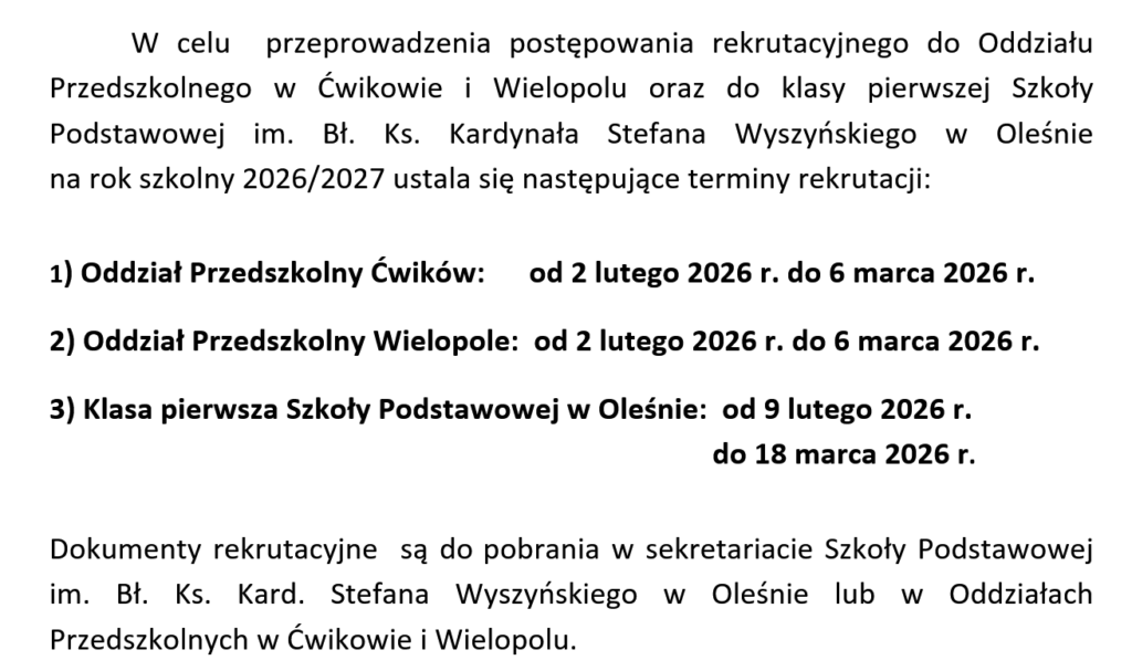 - Karta zgłoszenia do oddziału przedszkolnego – Wielopole.