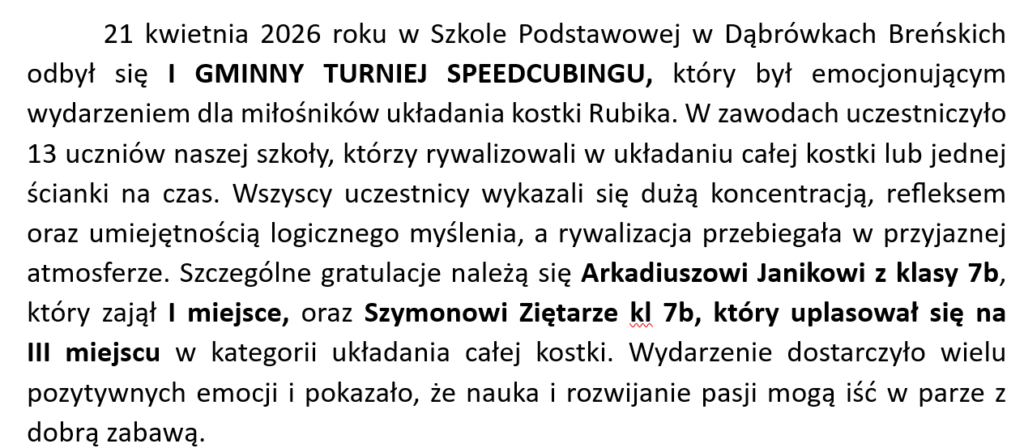 Arek Janik najszybszy w konkursie układania kostki Rubika
